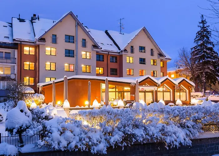 Das Hotel Pokoje Se Saunou Aura Spicak ist in 5 Gehminuten Entfernung von der Seilbahnstation Alpalouka zu finden.